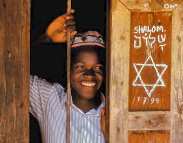 Samson Wamani in doorway of his home (credit: Wildfoto.com) The Abayudaya are a small (600 member) community...